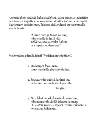 Lisäksi paketissa on valmiiksi painettu runo (runo numero 4), jota voi myös käyttää. (klikkaa tekstiä, niin saat sen suuremmaksi)