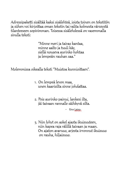 Lisäksi paketissa on valmiiksi painettu runo (runo numero 4), jota voi myös käyttää. (klikkaa tekstiä, niin saat sen suuremmaksi)