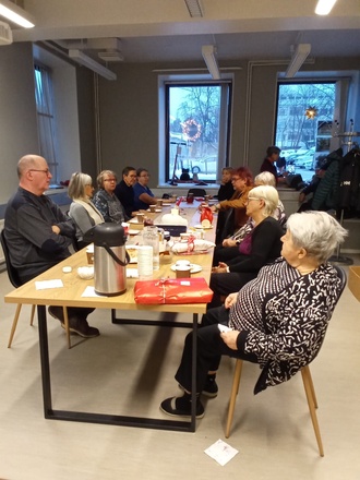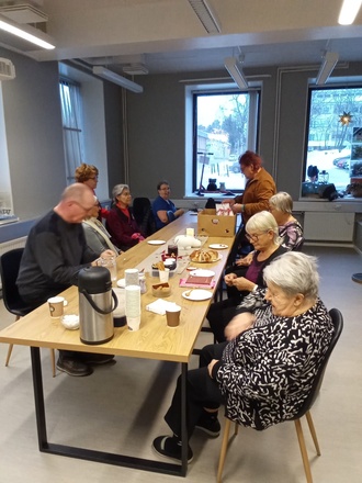 Kahvittelun ja torttujen kera laulettiin ja vaihdettiin kuulumisia.