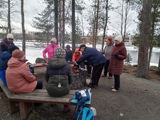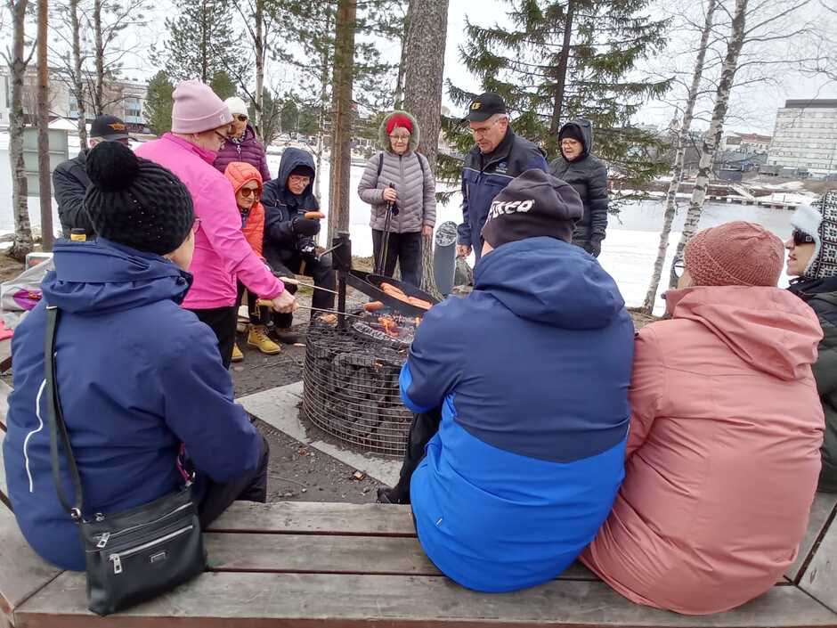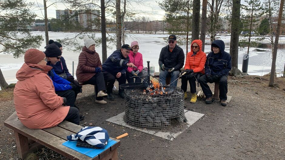 Tiistain kävelyretki päättyi yhteiseen makkaran paistohetkeen Limppusaaressa.