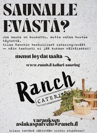 Sauna-eväiden tilaus onnistuu esim. Ravintola Ranchin kautta...